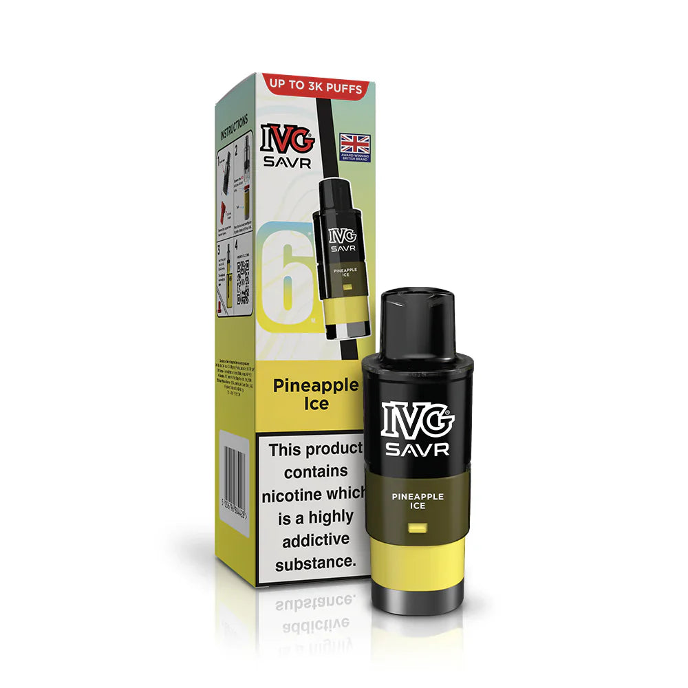 The Pineapple Ice IVG SAVR Pod & Refill Pack brings bold, tropical pineapple flavour with a clean, cooling menthol exhale. It’s juicy, refreshing, and delivers a bright, fruity hit with every puff — ideal for fans of exotic flavours with a chilled twist.